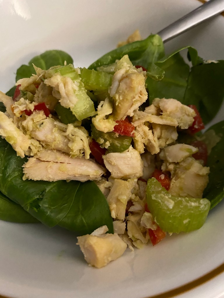 Mix it all together and serve in the wrap of your choice, on top of a salad, on bread, or a bun. For in the field I did wraps for my husband. Forgetting dinner I choose to put it over top of spinach. For lunch tomorrow I am defiantly going to try it on one of my egg white wraps.